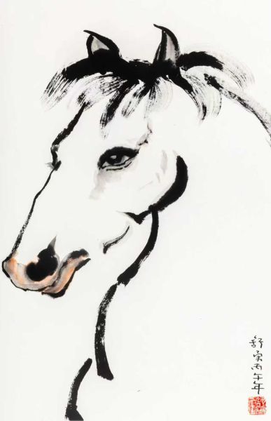 “点睛”是极具仪式感、需全身心投入的时刻,我悬空手腕好一会儿,让身心气息跟笔锋墨意达成贯通,才用笔尖最细处去点触关键位置,或仿若漆夜寒星之浓,或仿佛晨曦里微弱光芒,或是渲染出来后所留的空白,正是这“一抹灵光”,令马首瞬间变得生动鲜活,使眼眸有了焦点、温暖感与方向标识,让内敛且强大的精神力量破纸显现,跟画外世界搭建深度的心灵对接,是我从一切艺术实践里提炼出的核心——精神的最高显现,屡屡凝聚于极其精微、纯净的形式架构里。
