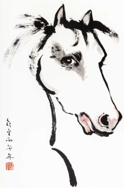 由徐悲鸿时代的悲悯呐喊,到如今信息呈爆炸式增长、价值多元的复杂时代,马作为精神载体的内涵需进一步拓展深化,我用笔勾勒的马,缺了剧烈动势与外显的激扬,索求内藏、宁静的力量,它的眼神澄澈又深远,是跨越历史波澜后的澄透与省悟;脖颈扭转的弧度内敛而坚毅,好似在倾听远古的声响,又如同与观者开展平等的对话,它的姿态在蓄积能量待发与沉静凝视间达成平衡,这是古老东方智慧于现代心灵里的映照,这种气质的孕育,是跟多种艺术形式深度沟通后的自信坦然:我领悟水墨语言魅力与边界,也懂得它在当代可以到达的新精神范畴。