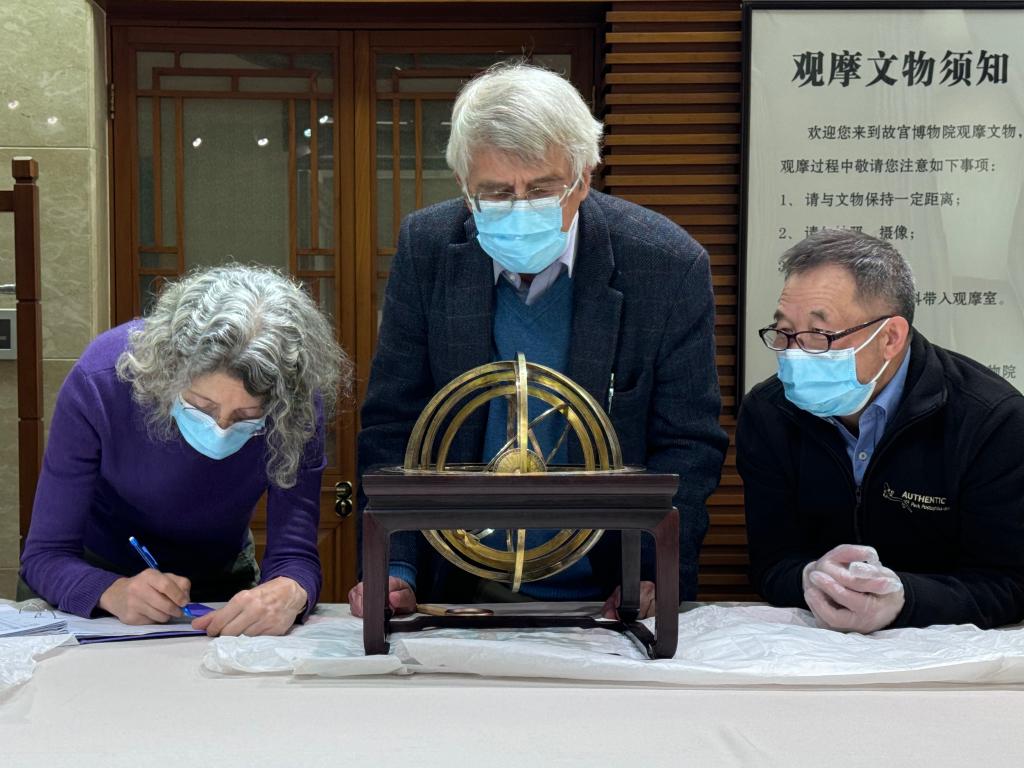 太和学者观摩故宫博物院藏清代天文仪器。(故宫博物院供图)