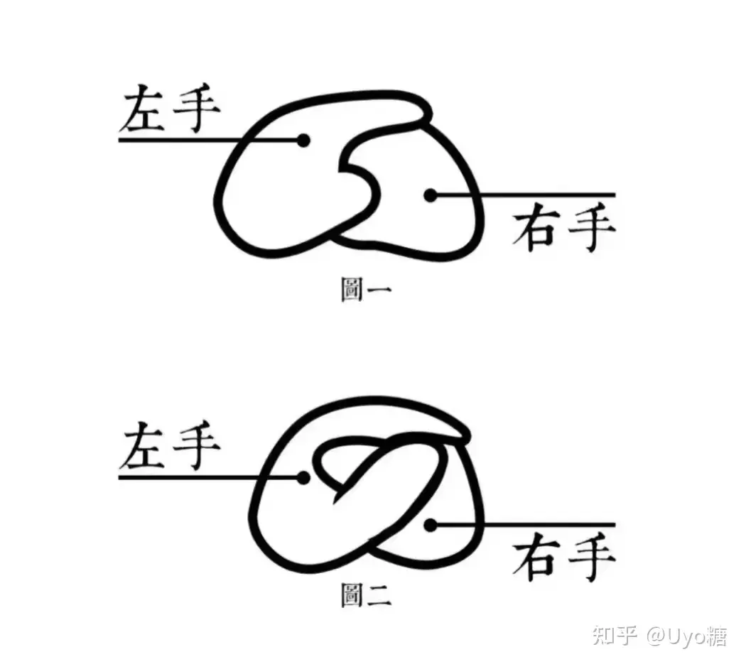 我们先看左手,手指顺时针,模拟天道左旋,与河图的方向一致。