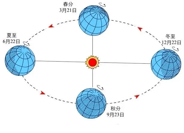 假如你现在站在北极星俯瞰整个太阳系,你会发现,整个太阳系沿着,春分—夏至—秋分—冬至的方向逆时针旋转