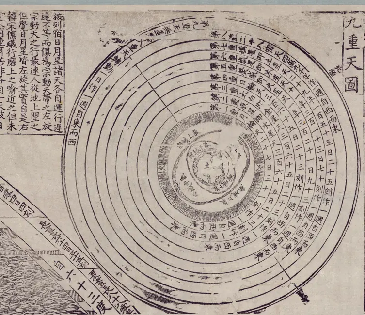 在明朝永乐年间的坤舆万国全图我们看到了九重天的真正定义