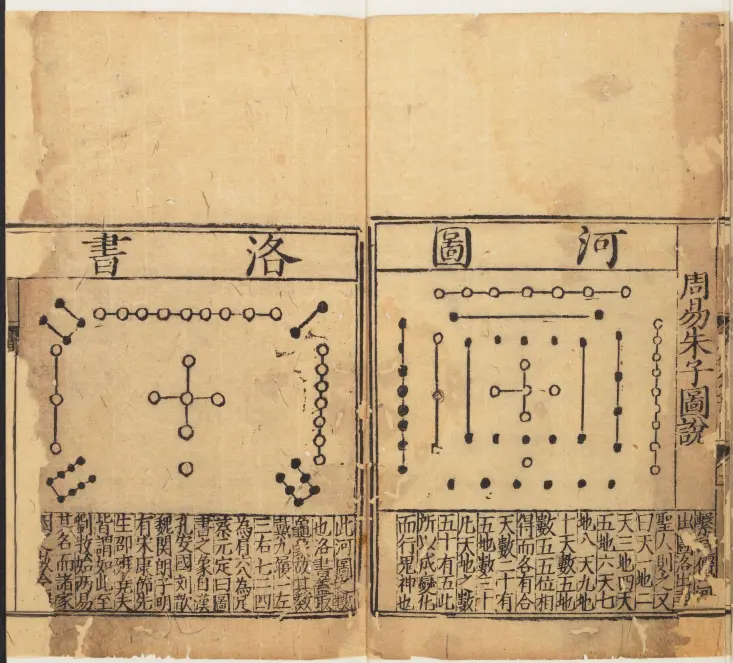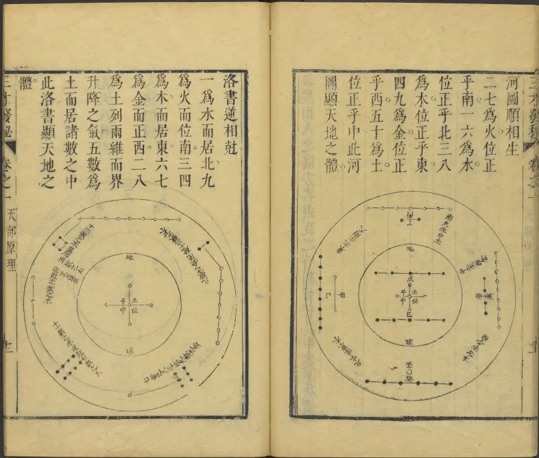 《易乾坤凿度》天本一而立,一为数源,地配生六,成天地之数,合而成性,天三地八,天七地二,天五地十,天九地四,运五行,先水次木,次土及金。